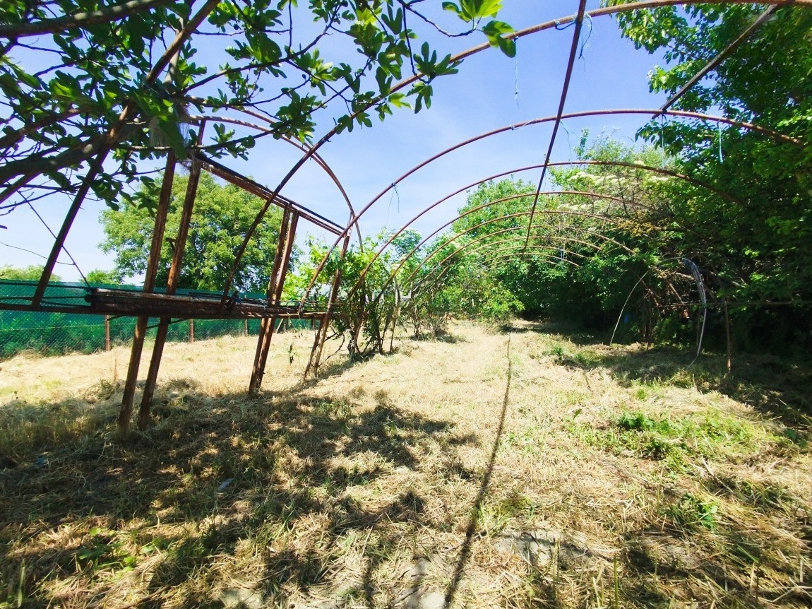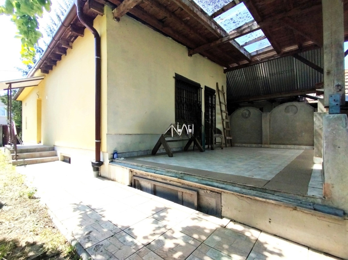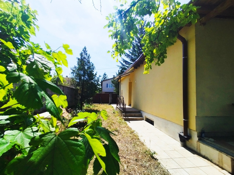 Pri dome je zastrešená terasa, na ktorú sa vchádza aj priamo z jednej z izieb. Pozemok, patriaci k domu, bol rozdelený na oddychovú časť a záhradu, s vysadenými ovocnými a okrasnými stromami. Jeho veľkosť umožňuje novým majiteľom využitie podľa vlastných predstáv.