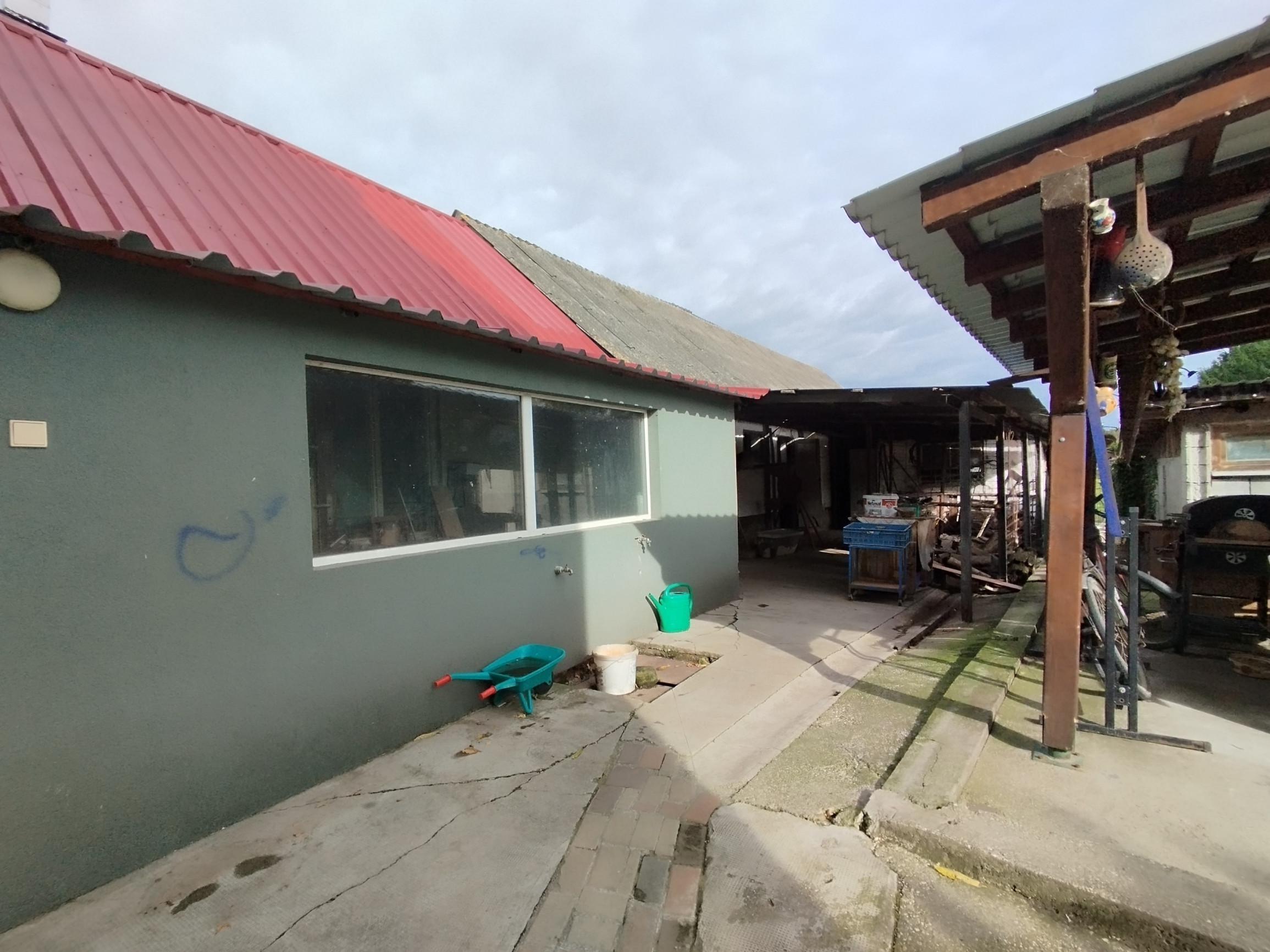 V dvorovej časti pozemku je drevený altánok a vedľajšie stavby, z ktorých jedna slúžila na chov domácich zvierat, ďalšie boli bývalou kotolňou, v súčasnosti sú stavby využívané k uskladneniu záhradnej techniky a mechaniky.