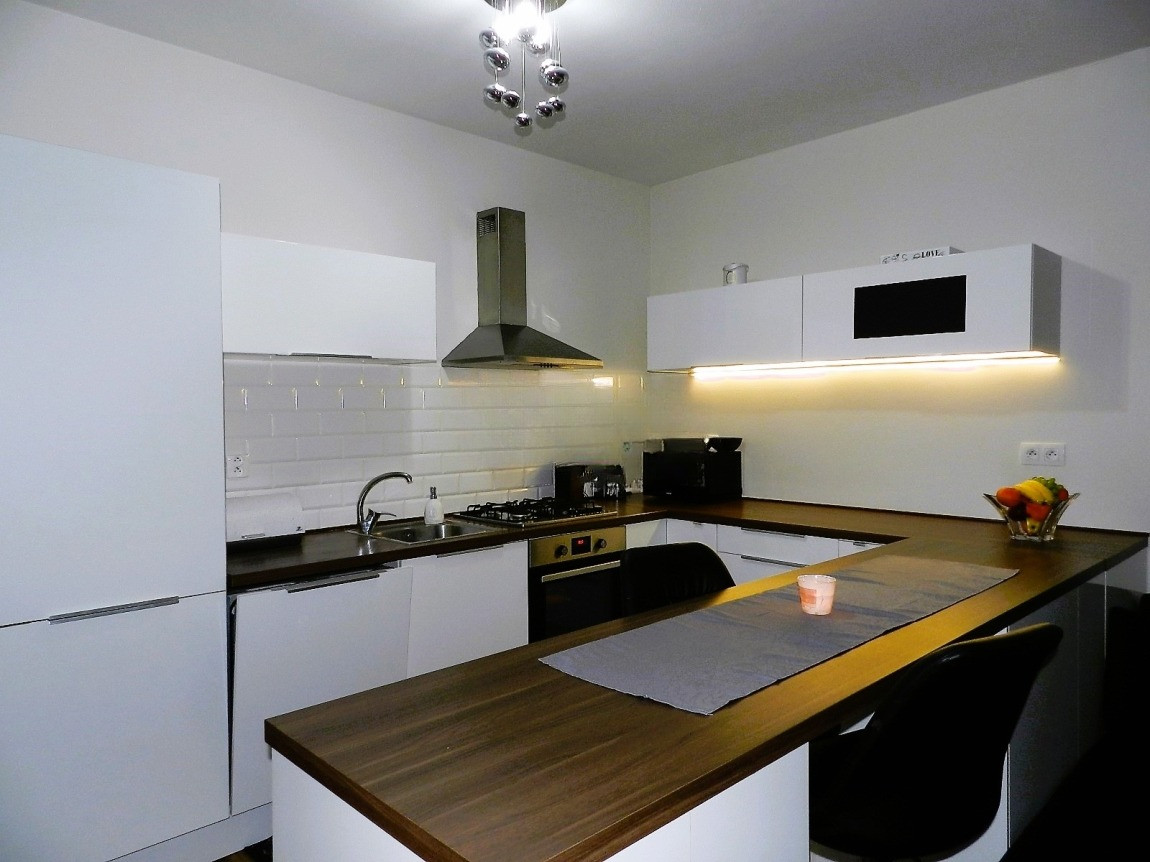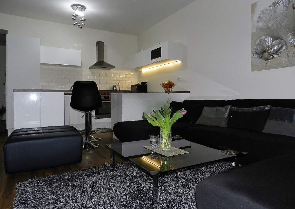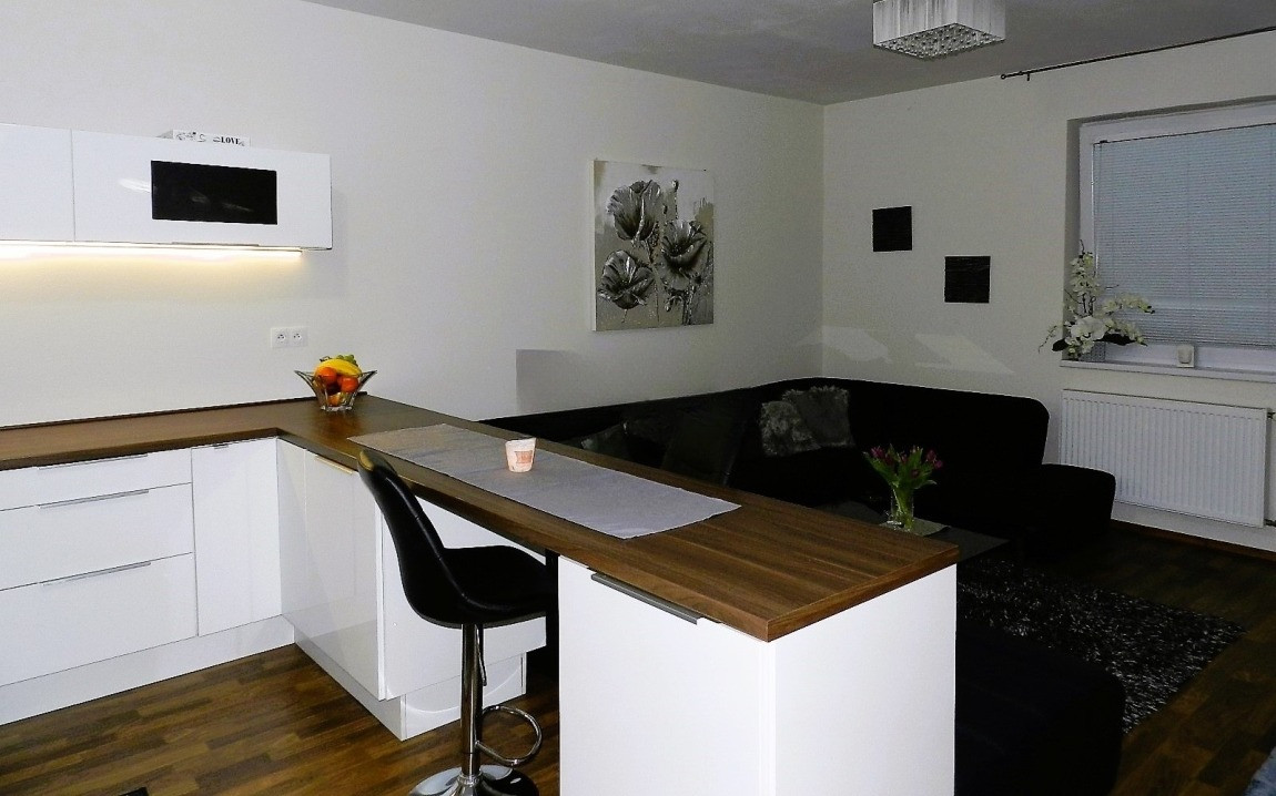 Obývacia izba je prepojená s kuchyňou, čím sa tento priestor stane centrom diania vo Vašej domácnosti. Samotná kuchyňa je vybavená kuchynskou linkou v tvare U, s množstvom odkladacieho priestoru. Jej súčasťou je kombinovaný sporák, digestor, umývačka riadu a vstavaná chladnička a mraznička.