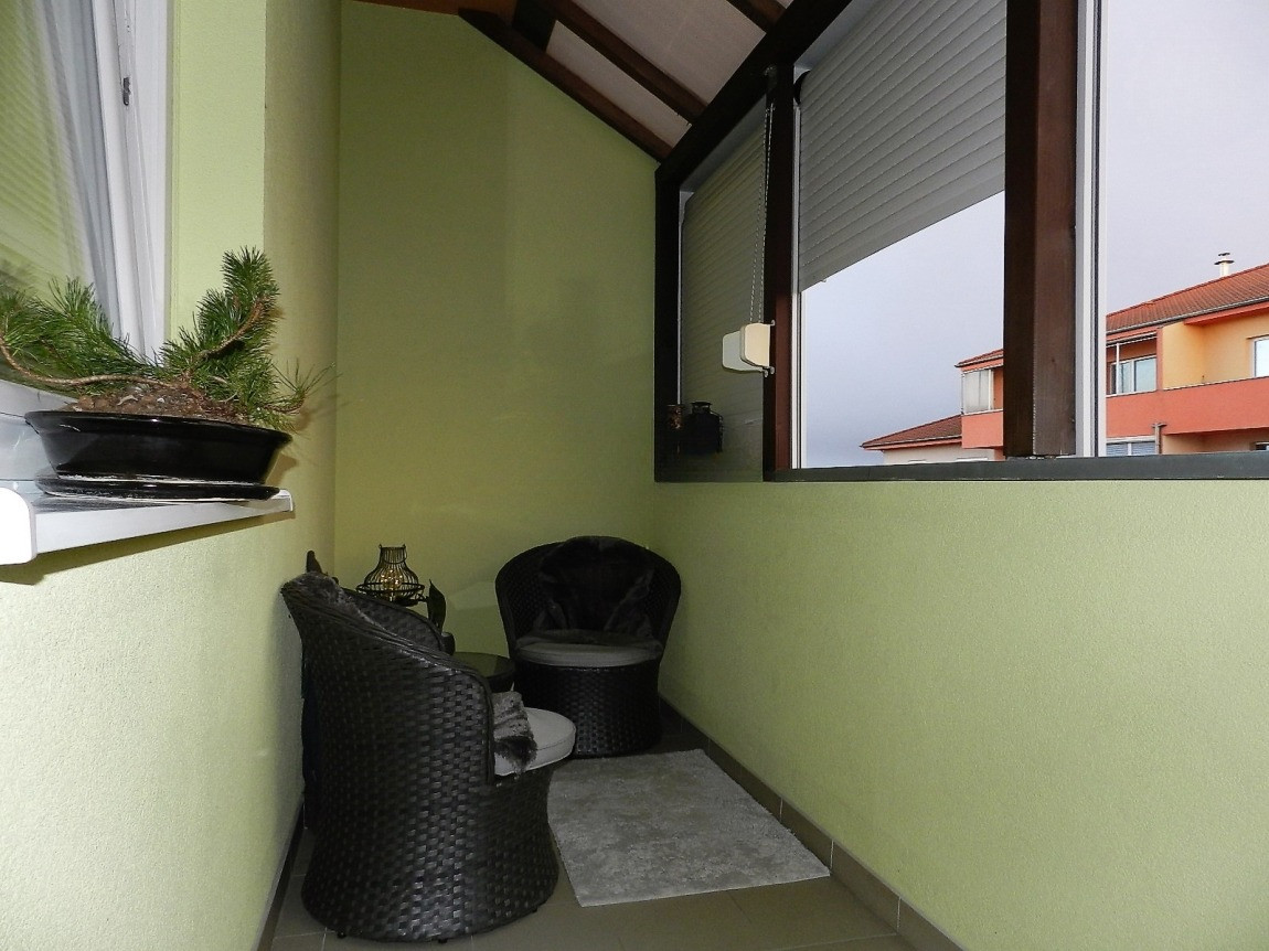 Murovaný balkón má vonkajšie tienenie žalúziami.